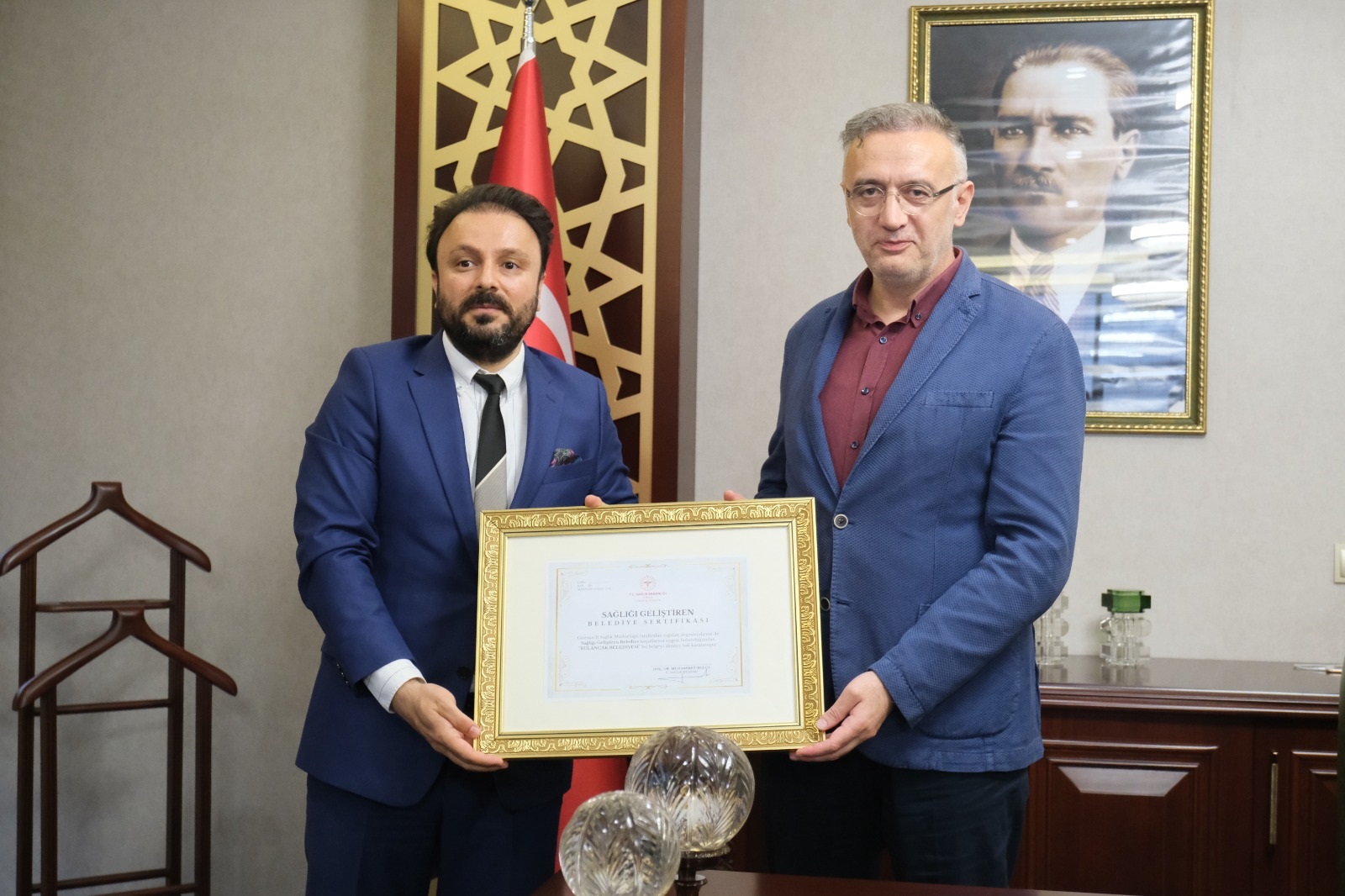 Bulancak Belediyesi’nde yapılan proje tanıtım ve sertifika takdim töreniyle, Giresun İl Sağlık Müdürü Doç. Dr. Muhammet Bulut, projeye karşı ilgi ve desteklerinden dolayı Bulancak Belediye Başkanı Recep Yakar’a teşekkür ederek SAGEP SERTİFİKASI takdim etti. Başkan Yakar’da böyle bir projede yer almaktan ve ilk sertifikaya layık görülmekten ayrıca mutluluk duyduğunu ifade ederek, İl Sağlık Müdürü Bulut ve Proje ekibine teşekkürlerini iletti.